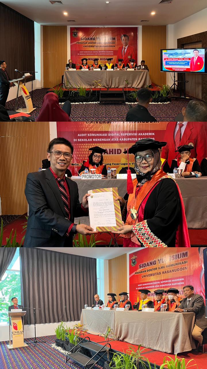 MAKASSAR, MN — Wahid Hidayat resmi melangkah ke gerbang doktoral. Kandidat Doktor Program Studi Ilmu Komunikasi Universitas Hasanuddin ini mengikuti sidang yudisium setelah menuntaskan disertasi berjudul Audit Komunikasi Digital Supervisi Akademik di Sekolah Menengah Atas Kabupaten Bantaeng. Karya ini bukan sekadar pemenuhan syarat akademik, melainkan kritik terbuka terhadap praktik supervisi pendidikan yang kerap terjebak euforia digital tanpa substansi.