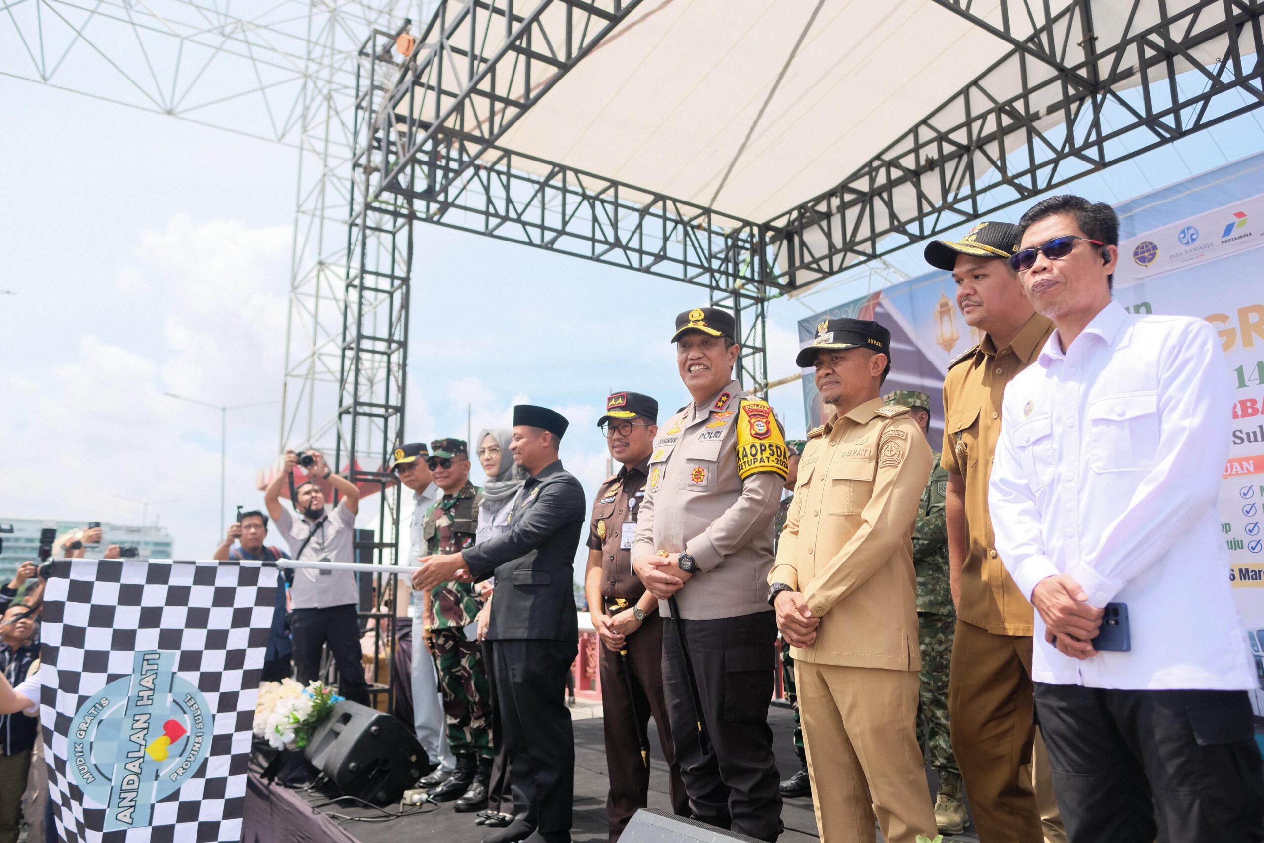 “Bismillah, hari ini kami melepas rombongan peserta mudik gratis Lebaran Idulfitri yang oleh Pemerintah Provinsi Sulawesi Selatan di kawasan CPI Makassar. Program ini merupakan kerja sama dengan jajaran Forkopimda serta dukungan dari BUMN dan BUMD,” ujarnya.